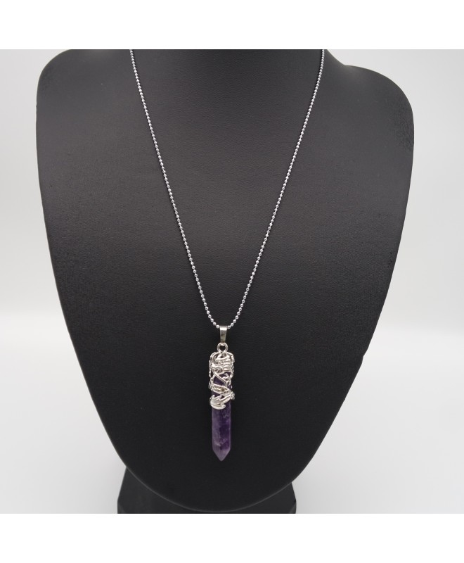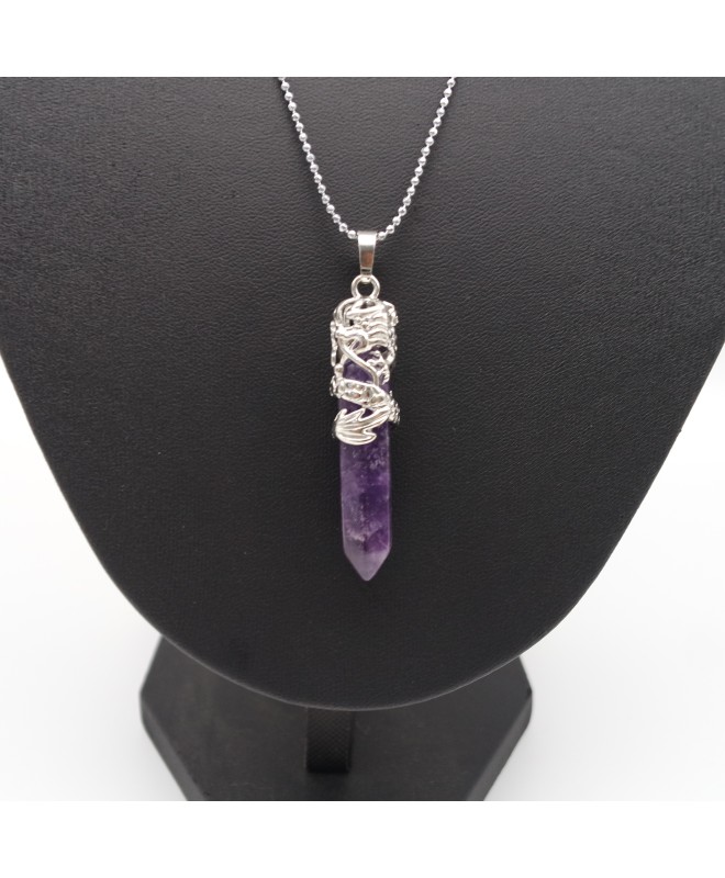 Amethyst Tribal Totem Dragon-Shaped Natural Stone Pendant Necklace